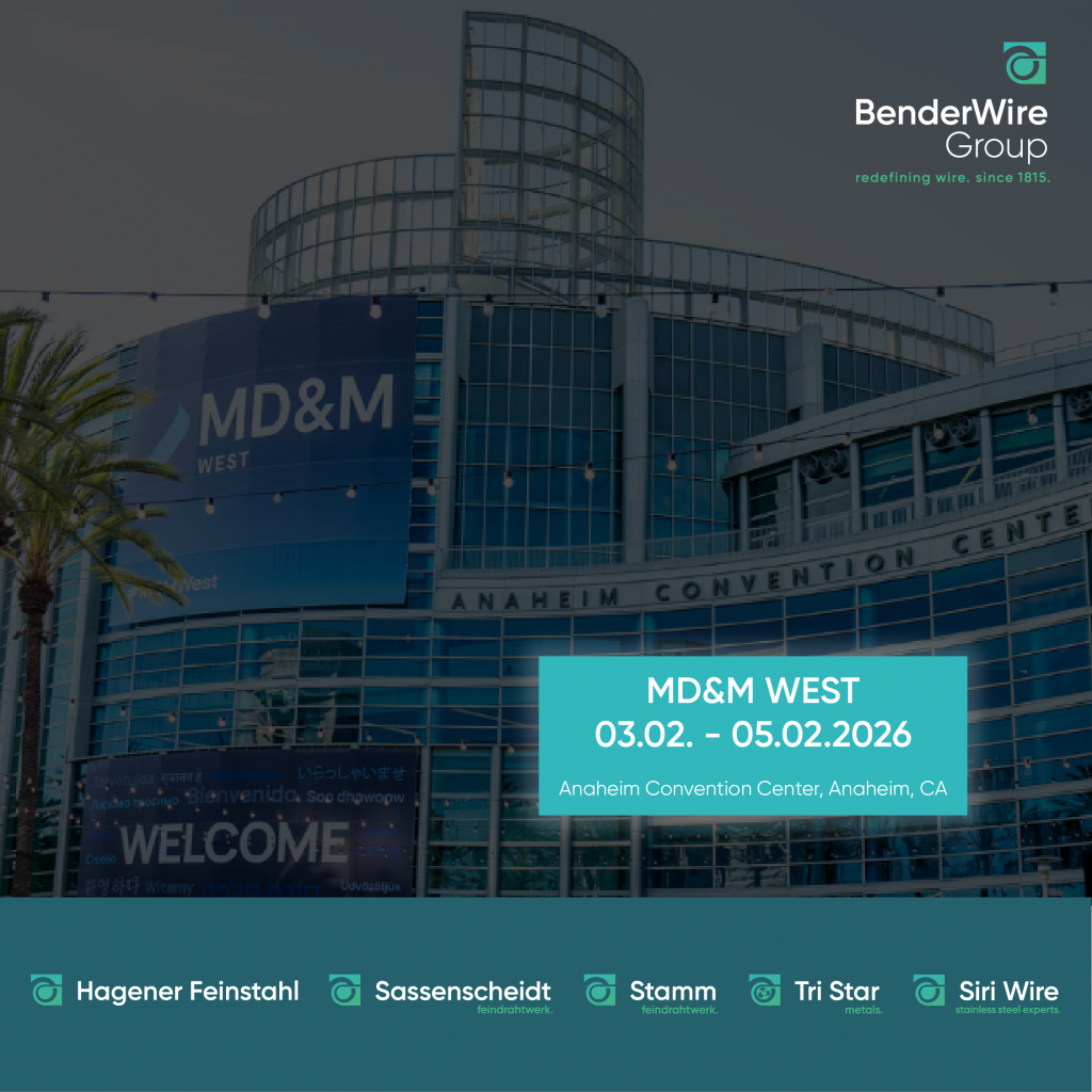 An diese positiven Erfahrungen knüpft die BenderWire Group 2026 an: Vom 3. bis 5. Februar 2026 werden wir auf der MD&M West im Anaheim Convention Center in Kalifornien präsent sein. Die MD&M West zählt zu den weltweit führenden Fachmessen für Medizintechnik und medizinische Fertigung und bringt Unternehmen, Entwickler und Entscheidungsträger aus der gesamten Branche zusammen.